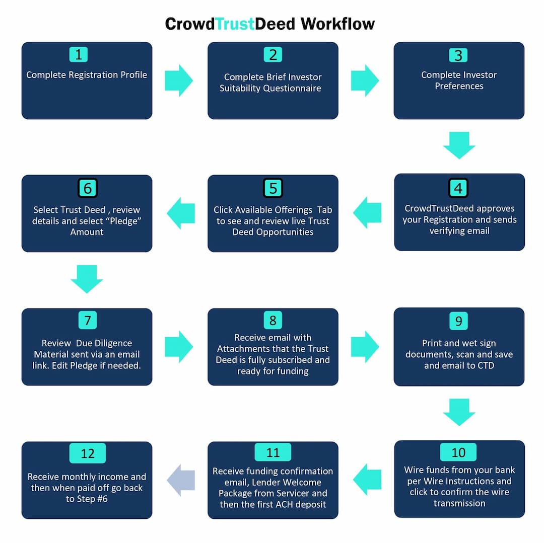 - • It is simple to get started. Register or Sign In, click on Available Offerings and then Review and Pledge on the available high-quality Trust Deeds. You can pledge for the whole loan if available or a fractional interest